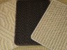Leather rugs, made from recycled leather clothing, are available in many colors in various sizes, priced for the budget conscious and up. Leather rug bindings are available in many textures and colors.
